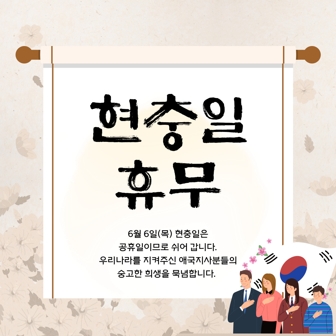 [공휴일 안내] 6/6(목) 현충일 휴무 안내
